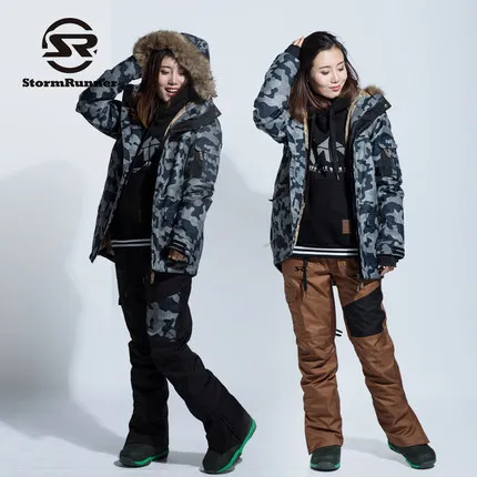 HIGH QUALITY StormRunner Brand Ski Suit Women Snowboarding jackets+Pants Warm Snow Coat Breathable Colorful Camo