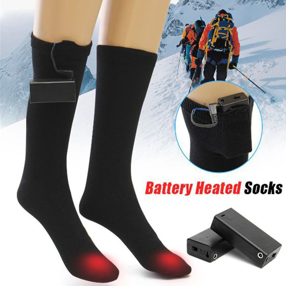 Winter Foot Warmer Women Men Cycling Socks Electric Charge Battery Heated Cotton Sock Feet Thermal