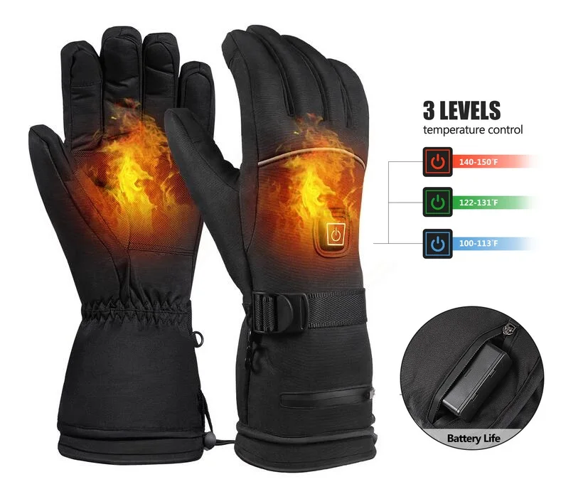 Heated-Gloves Hand-Warmer 3 Levels Temperature Control Skiing Cycling Snowboard Ski Without Battery